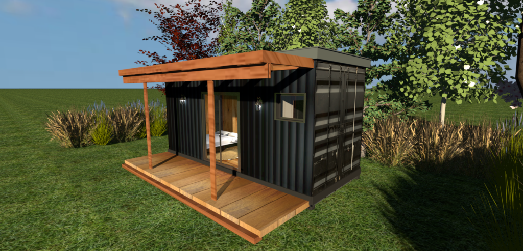 The Eco Pod Texel – industrial features finished with natural materials gives this unit a burly curb appeal. It’s constructed out of a 20 foot shipping container (surface 14.7 m2 / 150 sq.ft).  The Eco Pod Texel can be used as an office or a guest studio to accommodate 2 persons max. The living area is equipped with a Murphy bed (pull down bed system) which makes it an ideal solution to turn your office workspace into a studio for occasional sleepovers. Furthermore, this unit features lots of storage space, a tiled bathroom with shower, washbasin, and toilet. This unit is designed to be grid-tied.