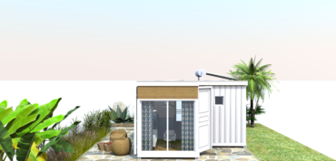 Eco-Z One Sint Maarten – is constructed out of two 20 foot containers (surface 29.6 m2 / 320 sq.ft). The ideal size for sporting a one bedroom apartment that accommodates two persons and an occasional sleepover. The Eco-Z One SXM, like its name is shaped in a “Z”. It has a separate bedroom, a bathroom, separate utility-washroom with washing machine connection and a dual living with full kitchen area.