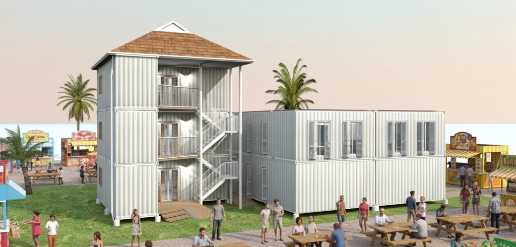 Premium Eco Business Units: Hurricane-resistant container units with modern amenities, available for lease or purchase, starting from XCG 678 (10ft) monthly.