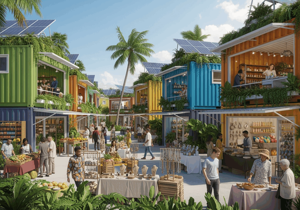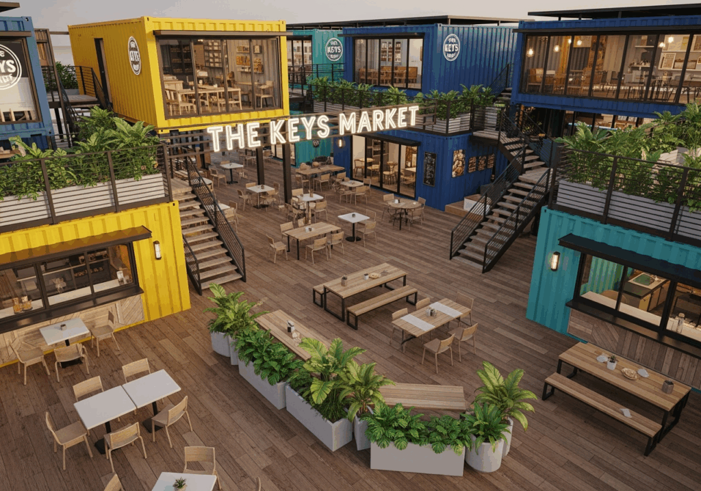 The Keys Market isn’t just another commercial space – it’s Sint Maarten’s first truly sustainable marketplace where hurricane-resistant design meets eco-innovation. Built from upcycled shipping containers and powered entirely by Caribbean sunshine, this groundbreaking project offers entrepreneurs the perfect platform to launch, grow, or expand their businesses while contributing to a greener future.